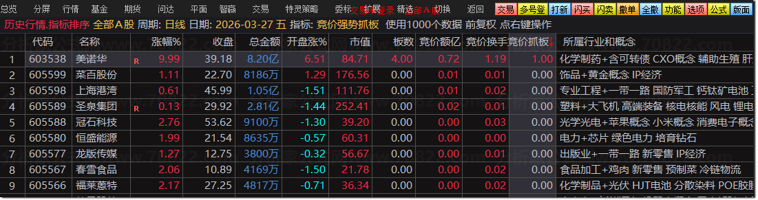 『竞价强势抓板』集合竞价排序+选股指标,捕捉强势涨停,量化策略