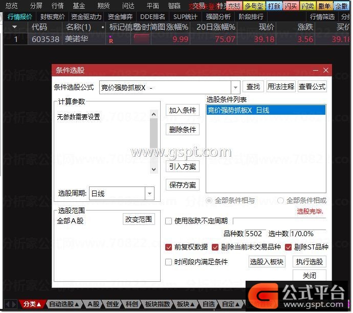 或者快捷键 Ctrl+T执行选股,或者设置竞价预警都可以。