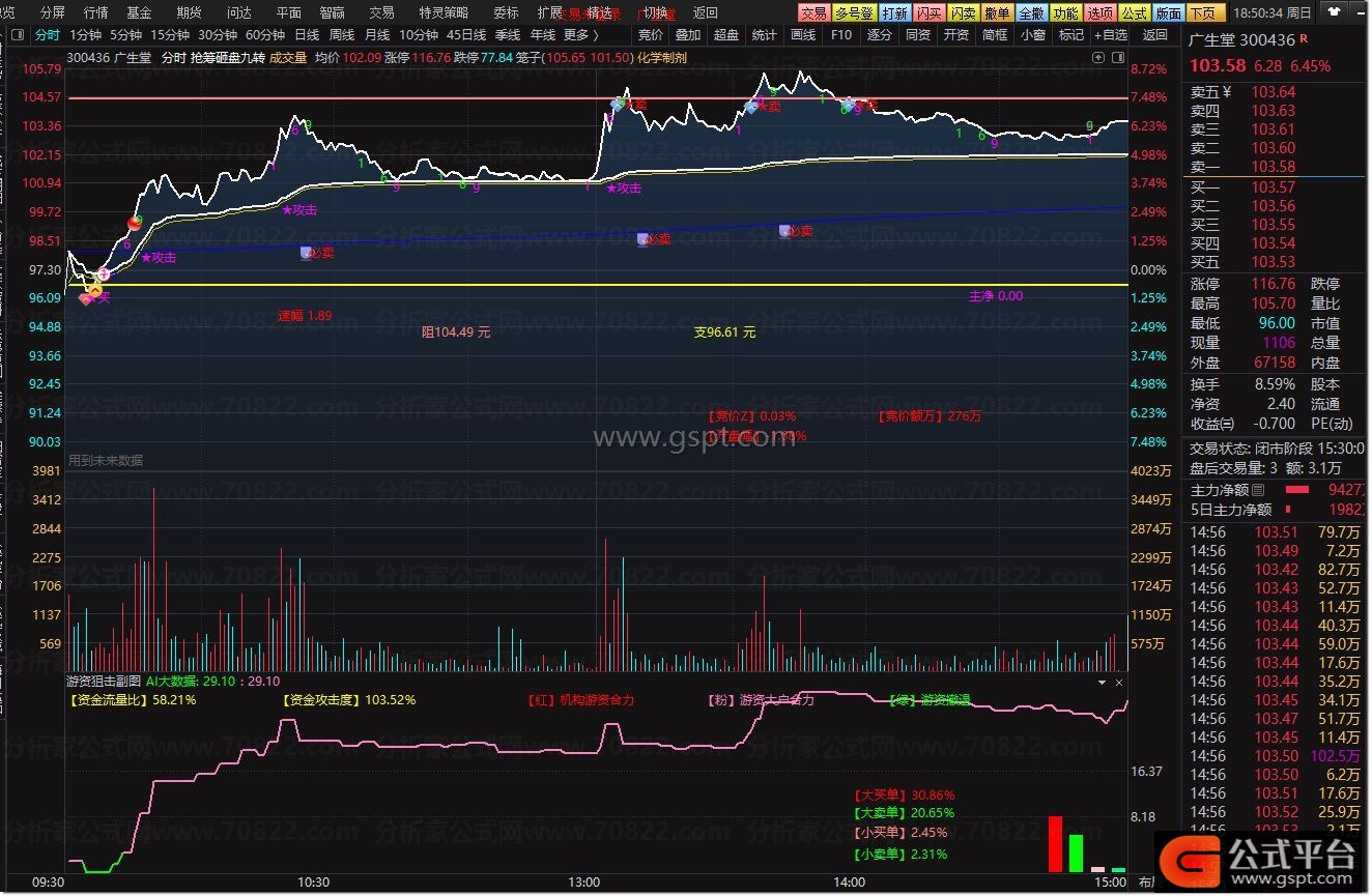 控盘:=(GSPT1-REF(GSPT1,1))/REF(GSPT1,1)*1000;