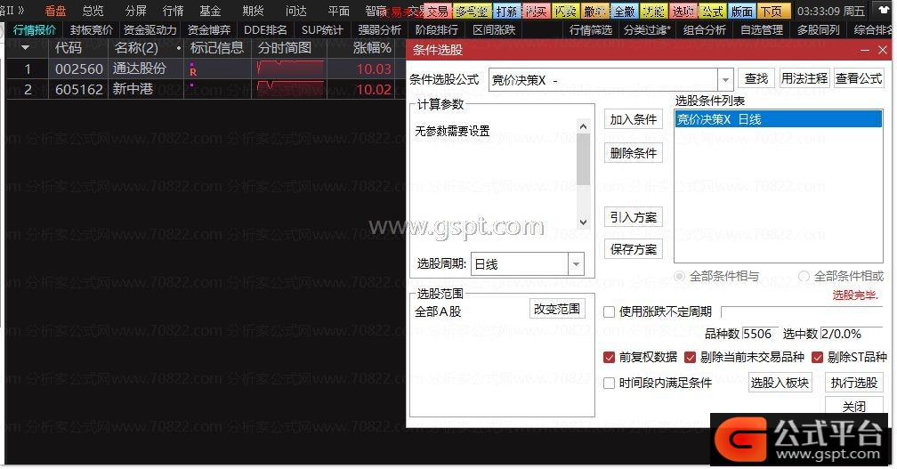 1. 早盘9:25-9:30竞价结束后,调用公式进行个股排序;