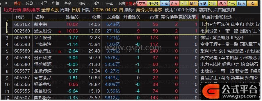 『竞价决策排序』竞价排序+选股神器 精准抓强势高开牛股