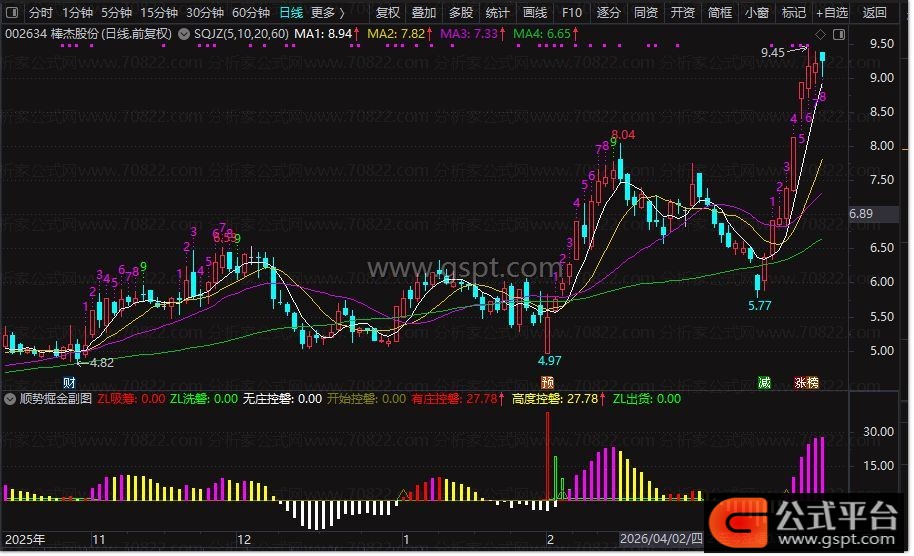 DRAWNUMBER(A_5 AND REF(A,5)=0,H*1.02,5),COLORMAGENTA;