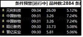 盘中预警,前3已经涨停2个,中国铁物和昭衍新药。晋亿实业涨停,昭衍新药涨停后炸板,中国铁物涨停。