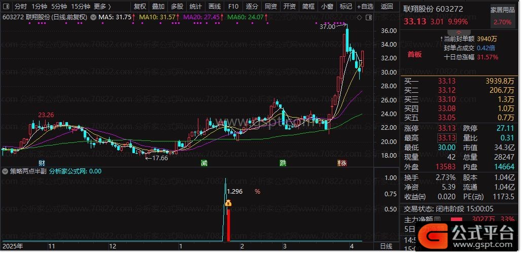 4. 规则:仅做A股主板/创业板标的,结合均线趋势,信号出现后轻仓尾盘介入,遵循短线快进快出原则。