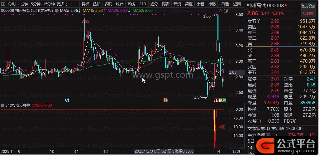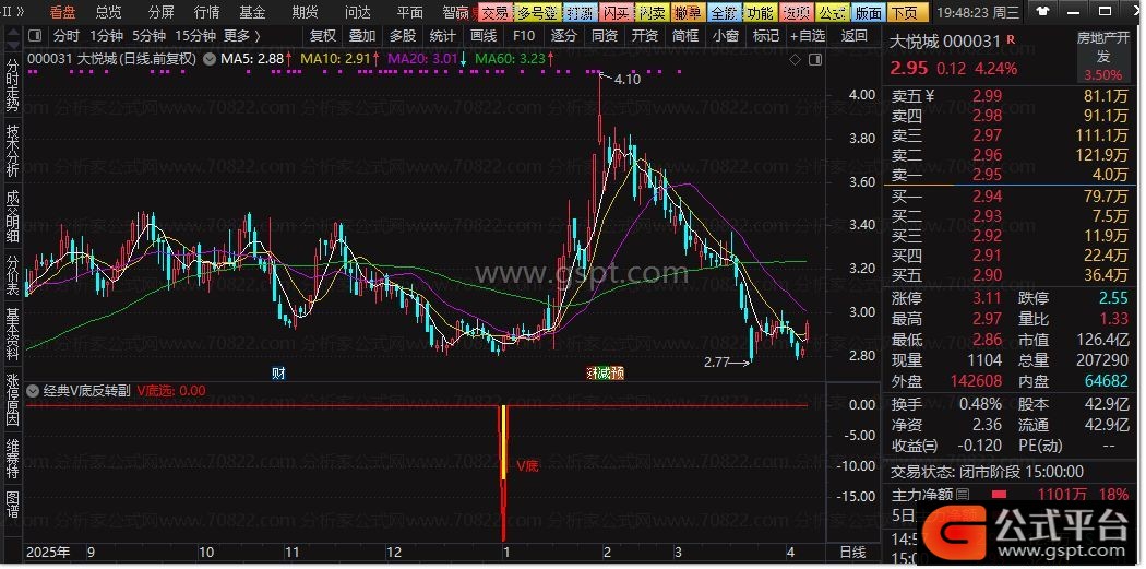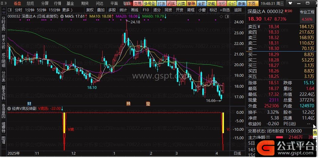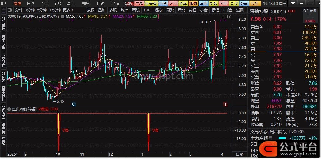 V底选:IF(gspt-HG=2 AND gspt>REF(gspt,1),-22,0),LINETHICK2,COLORRED;