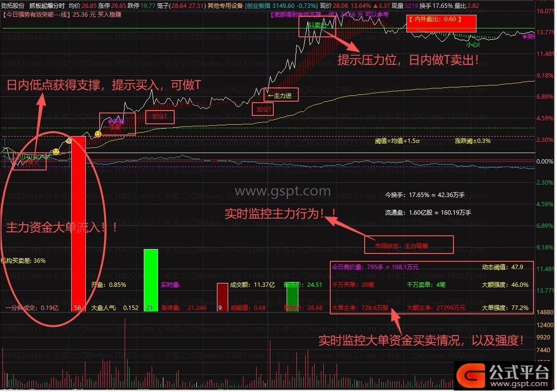 通达信『抓板起爆分时』很牛叉的日内做T分时主图!值得拥有