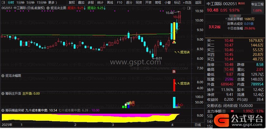 本指标有筹码分析,需要用到筹码函数cost不喜勿下!