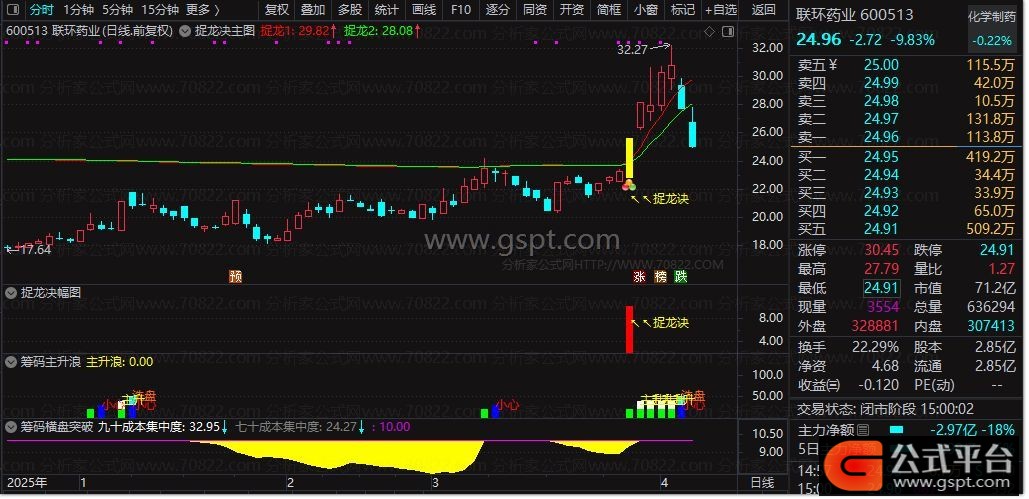 【捉龙决共振】指标用法:设置为预警公式,盘中有信号自动弹出!