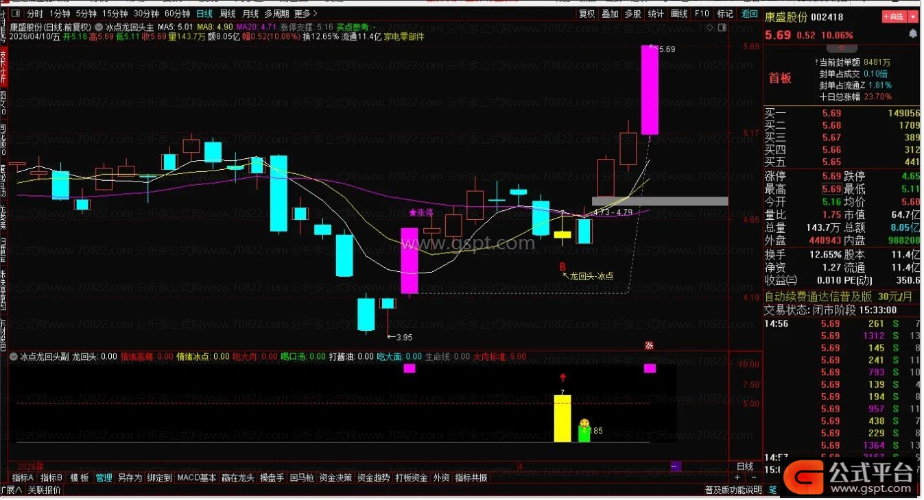 『2026冰点龙回头』优化版主副图+选股指标,强势低吸买点手机电脑通用