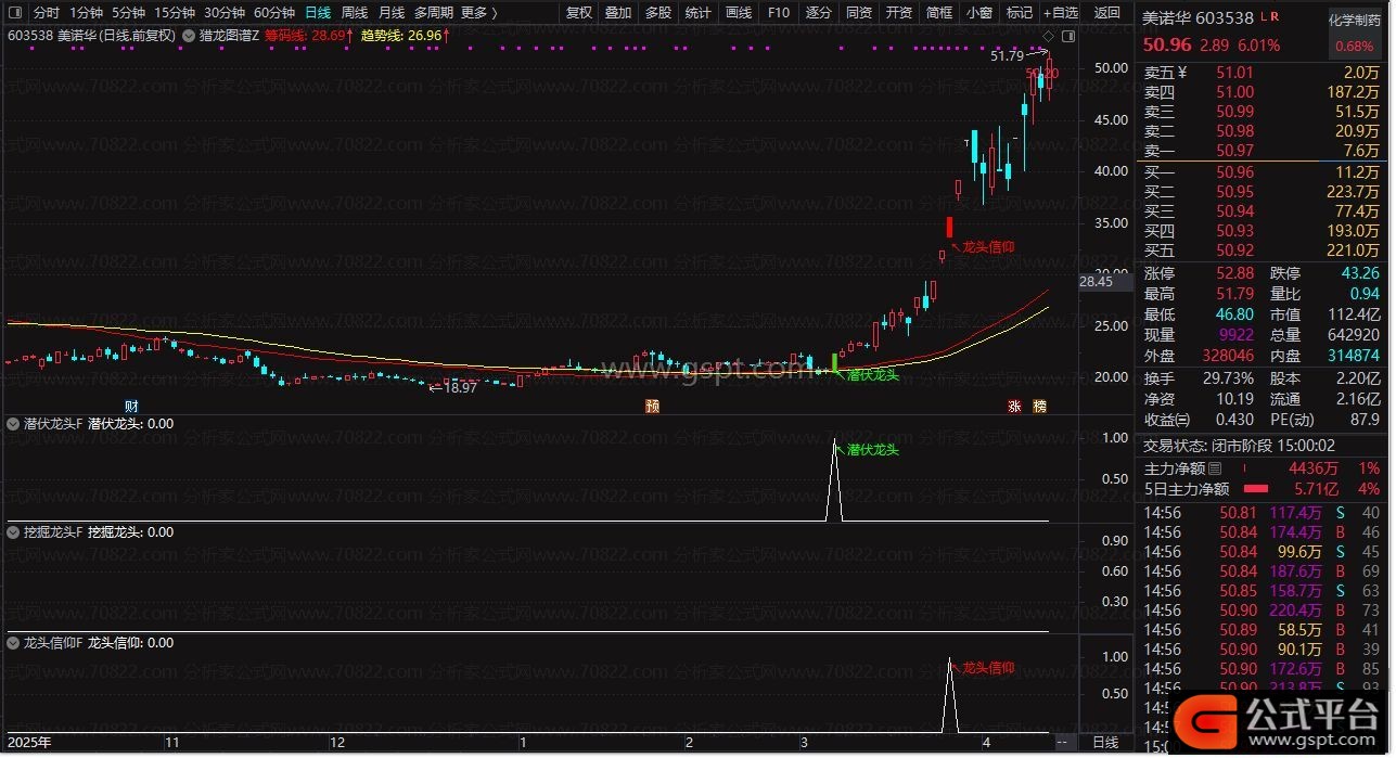 本公式通过多维度技术指标构建“猎龙”策略,精准定位潜力龙头股。
