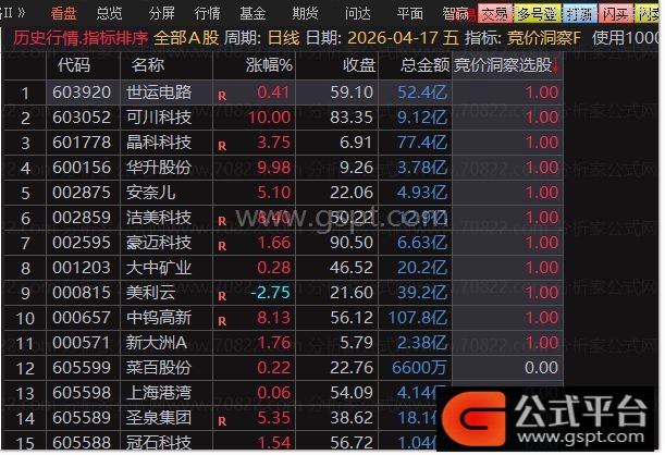金钻指标『早盘强龙排序』竞价爆量擒强势潜力标个股