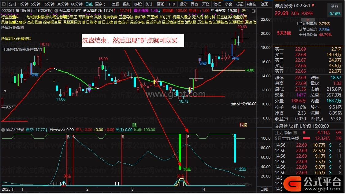 DRAWTEXT(gspt40 AND COUNT(gspt40,30)=1,35,'←出逃'),COLORCYAN;