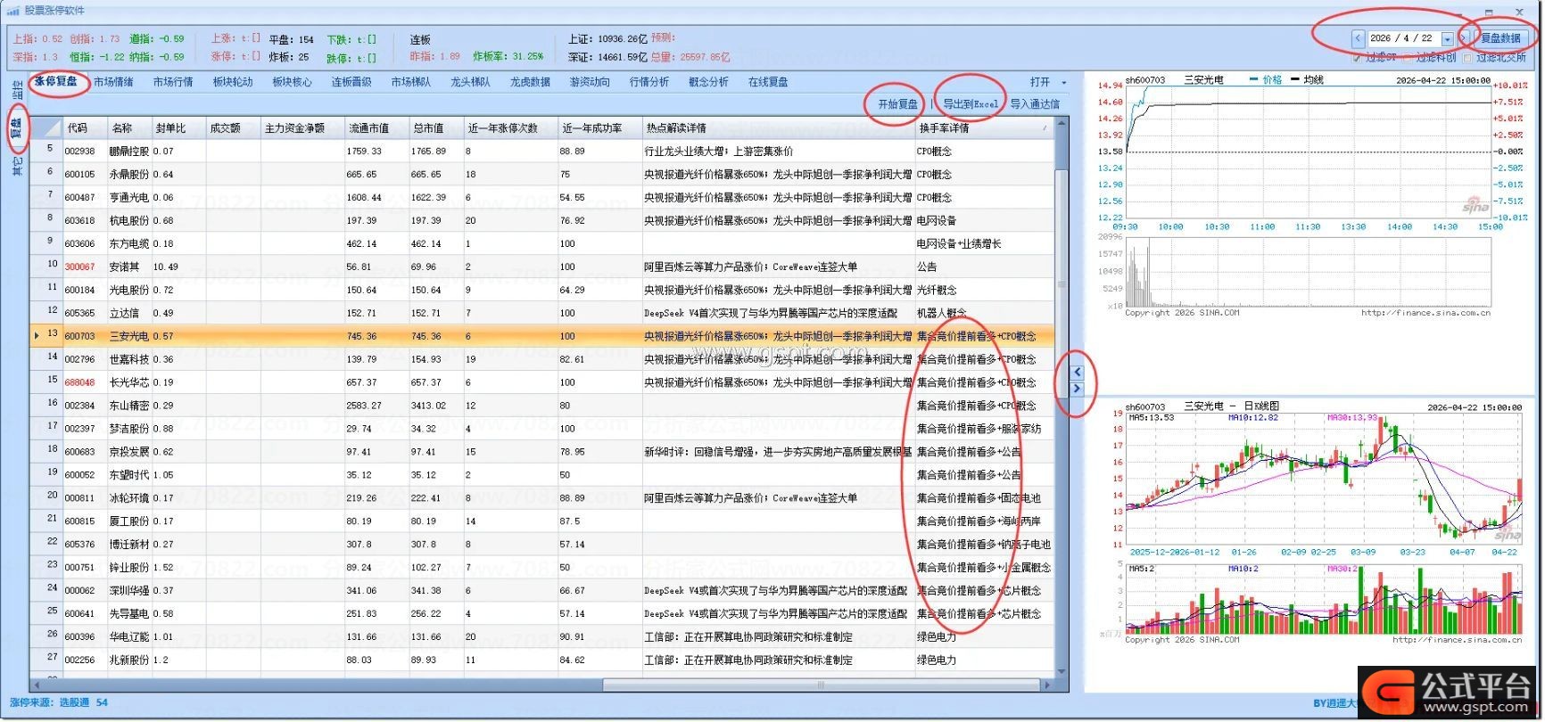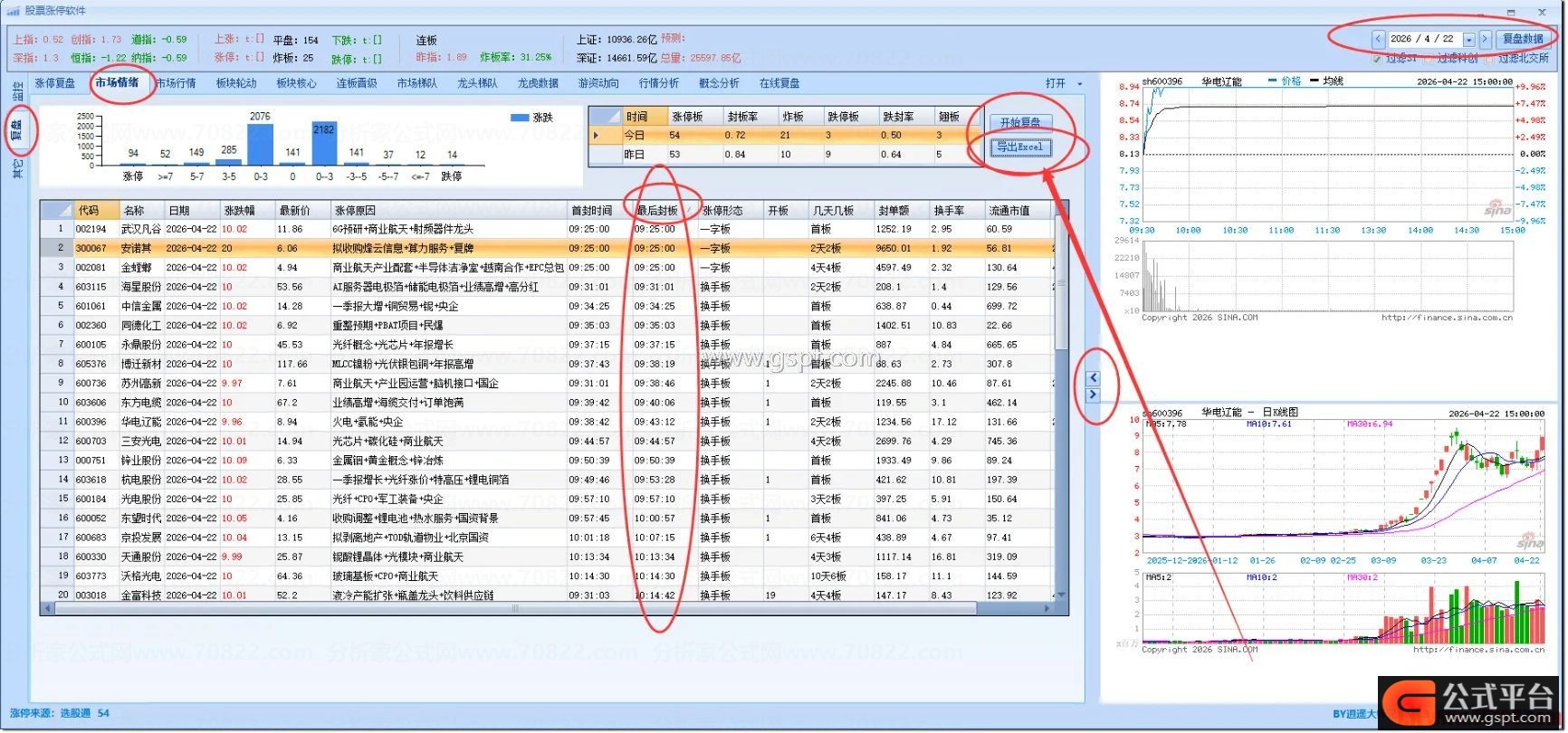 [股票涨停软件]行情分析复盘工具免费分享,复盘和几乎所有数据都可以【一键导出excel】是特色 [小工具]