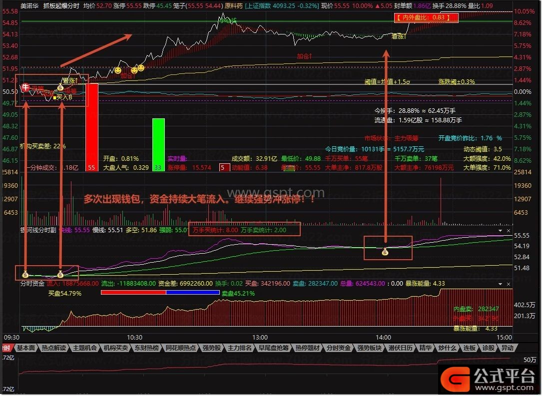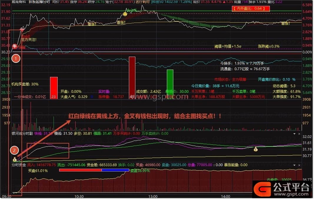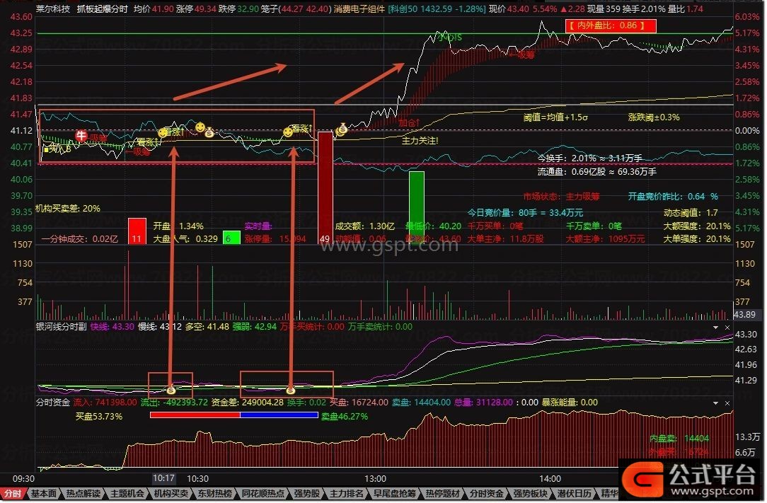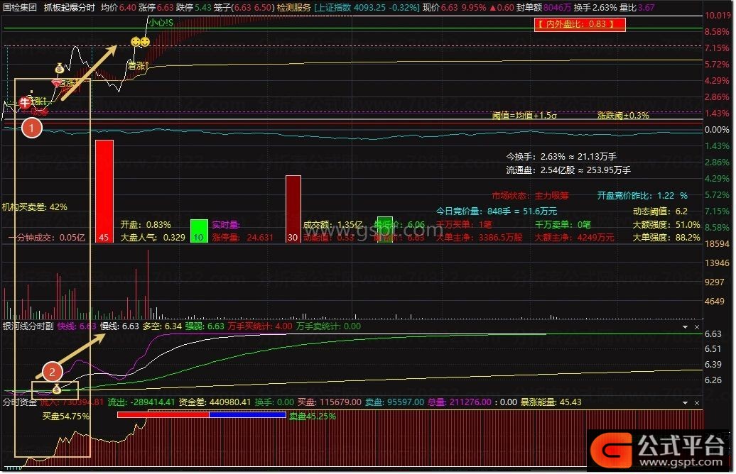 『银河分时副图』短线抓板做T低吸利器,大单买卖监控与分时趋势分析