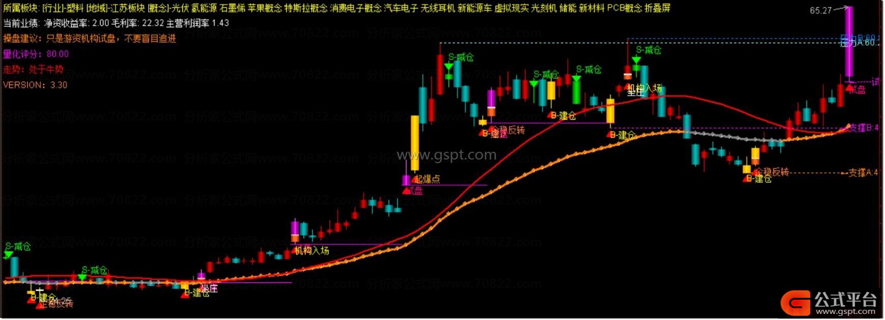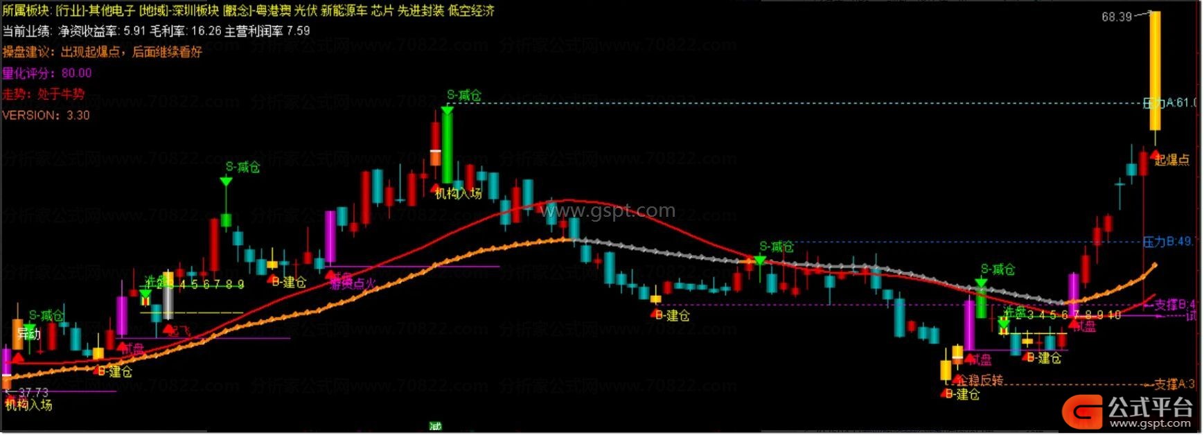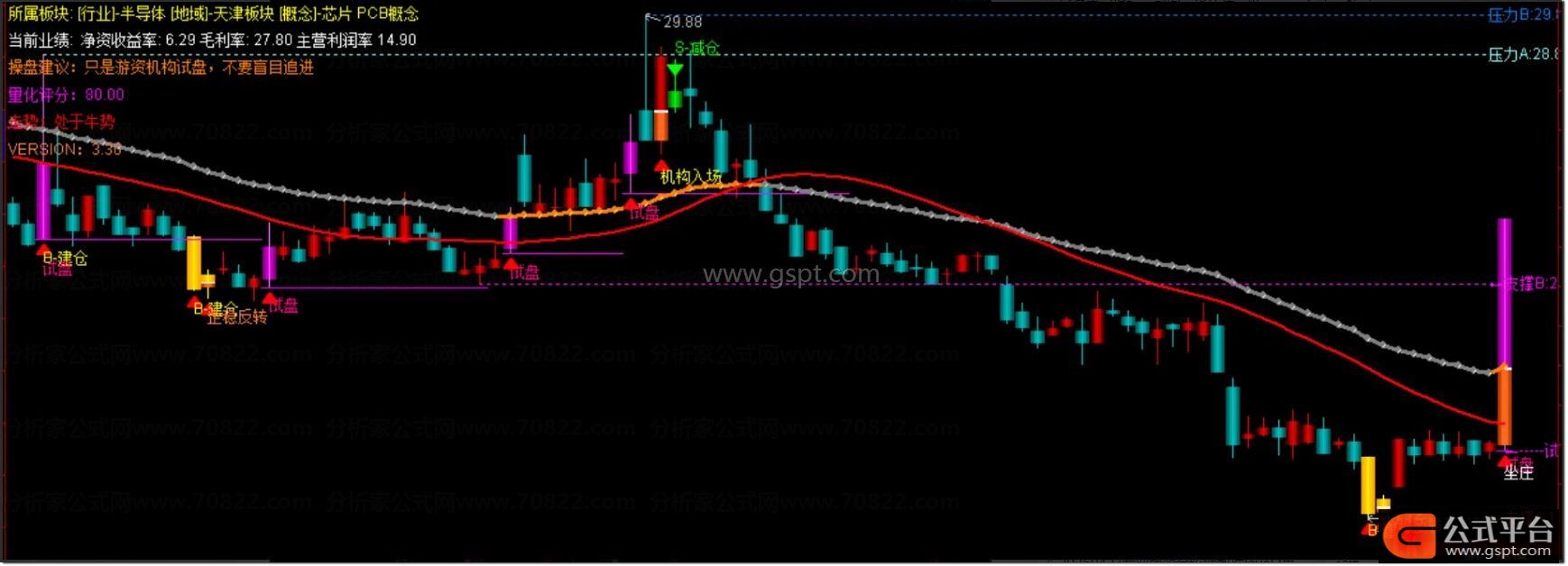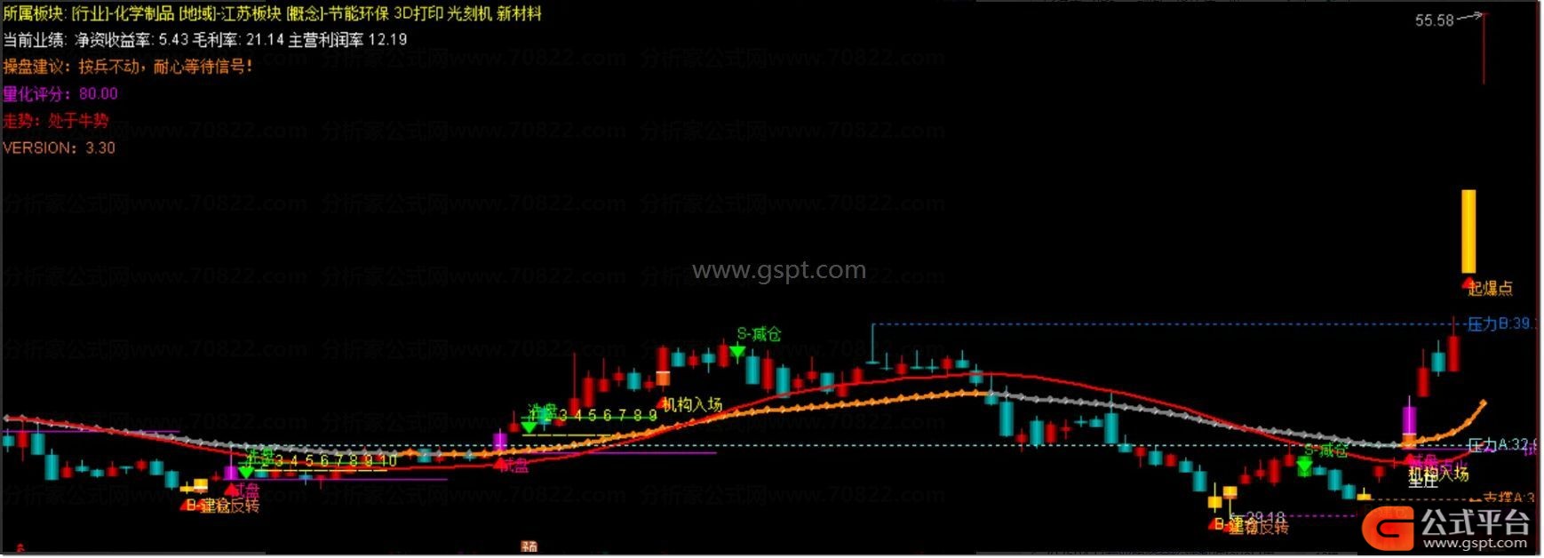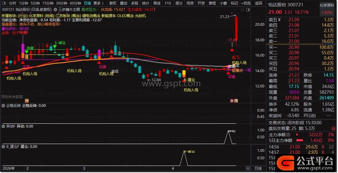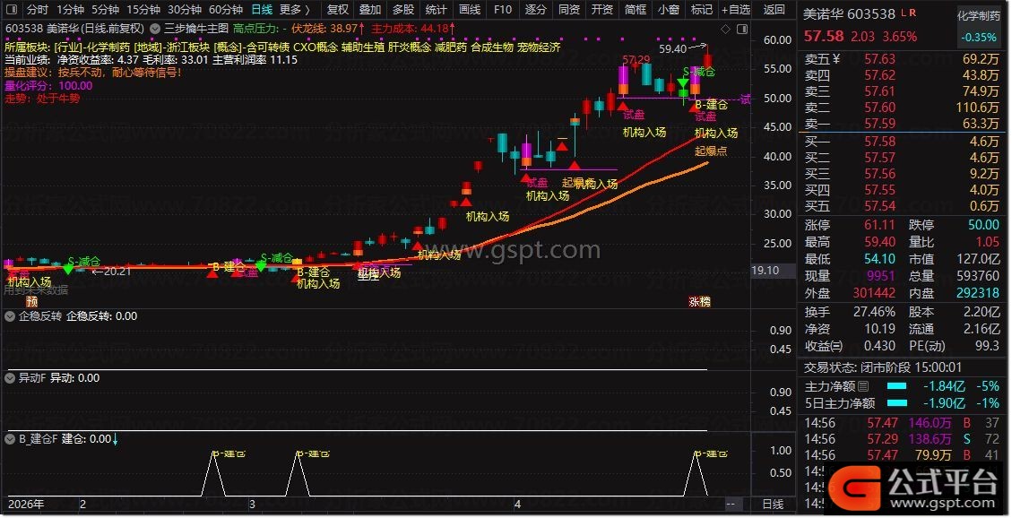 『三步擒牛』主图,建仓-加仓-止盈全流程锁定牛股,资金动向可视化 精准提示建仓加仓止盈买卖点